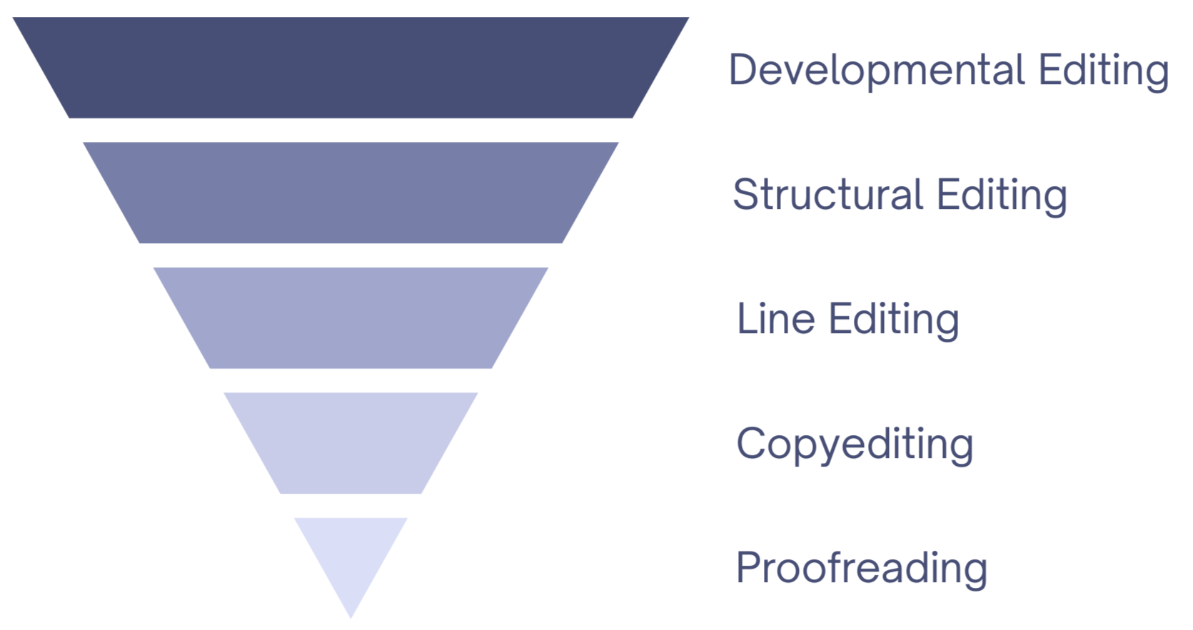 With each one, editors focus on different issues, looking at varying levels of detail—from the whole picture to each individual word.